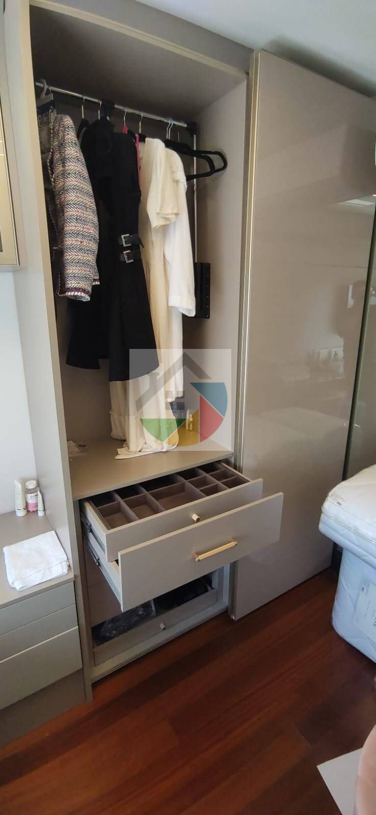 Com moveis, planejados, ar condicionado e varanda gourmet com fechamento em vidro.