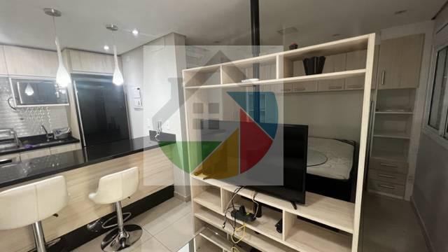 Studio 100% mobiliado e decorado, com 1 banheiro e 1 vaga.