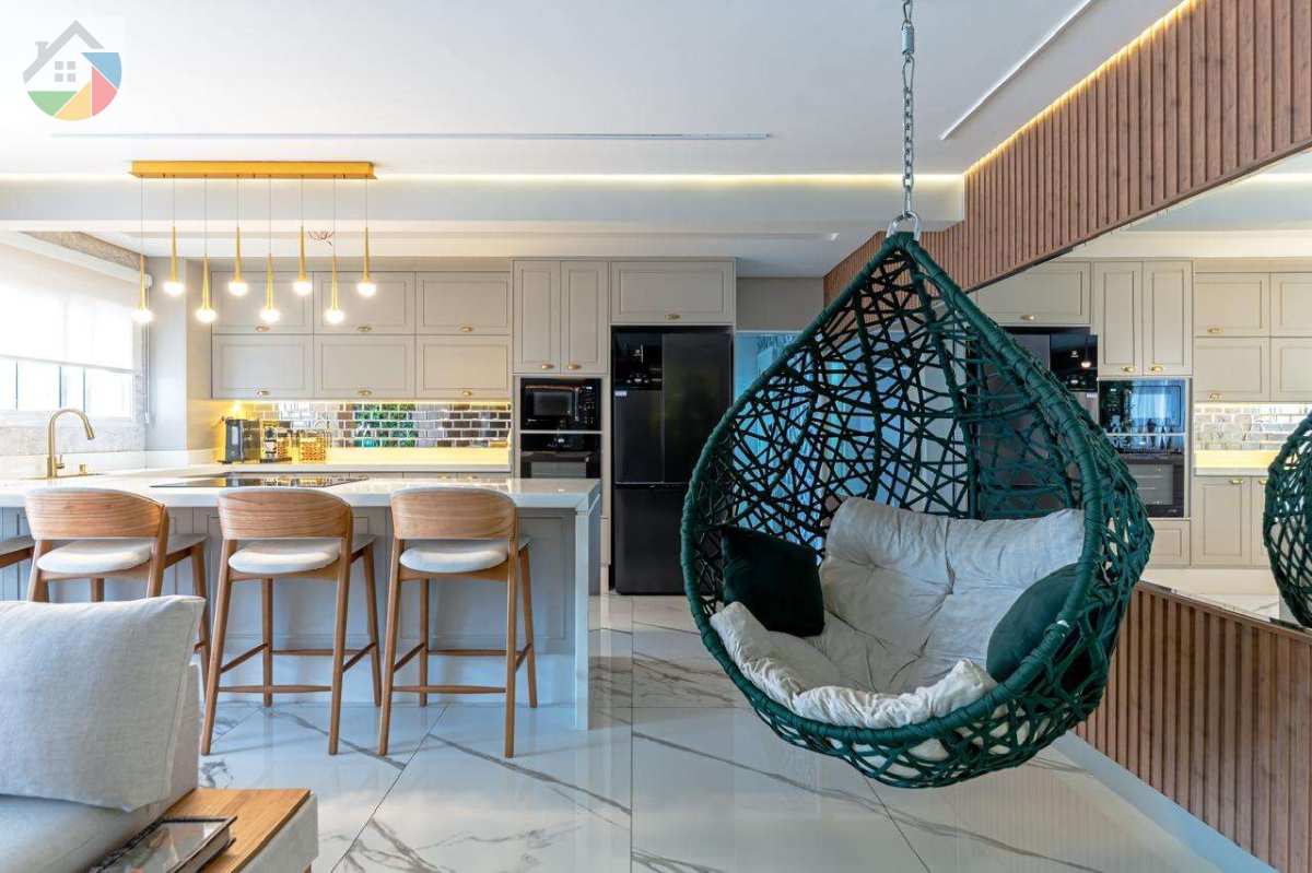 Com 03 suítes, lavabo, cozinha aberta estilo americana, varanda gourmet com churrasqueira a carvão, área de serviço ampla e banheiro de serviço, que foi adaptado com armários planejados para guardar calçados.