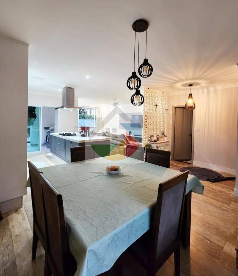 A casa de condomínio sobrado no bairro de Mogi das Cruzes, tem 300 metros quadrados com 3 suítes (suíte principal com hidro e amplo closet), 5 banheiros e 4 vagas.