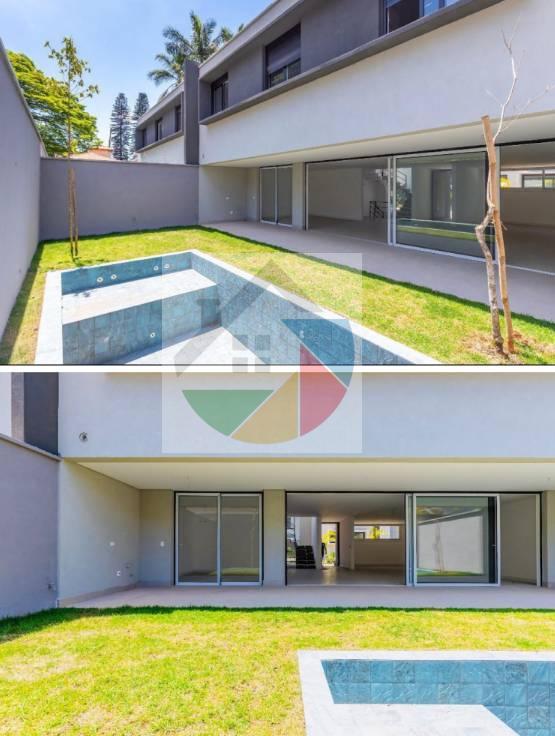 Com piscina e amplo jardim.