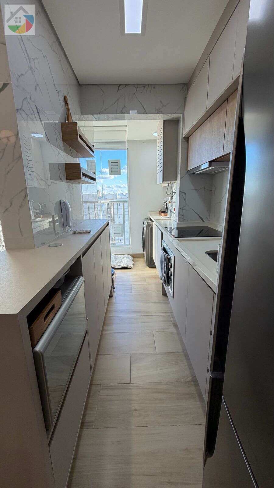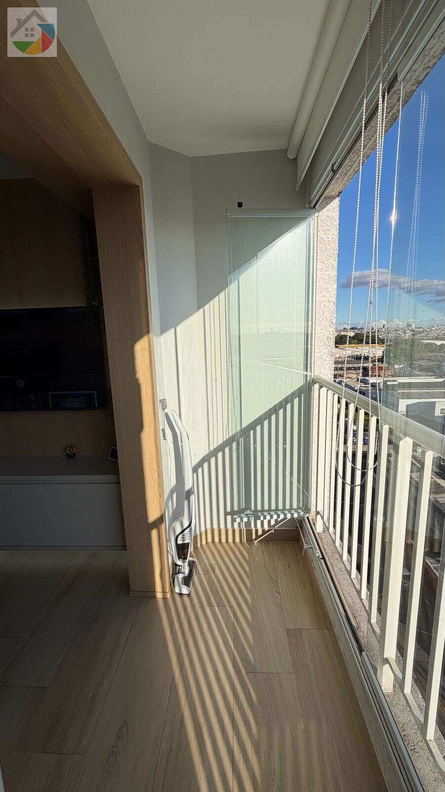 - Varanda envidraçada integrada à sala;